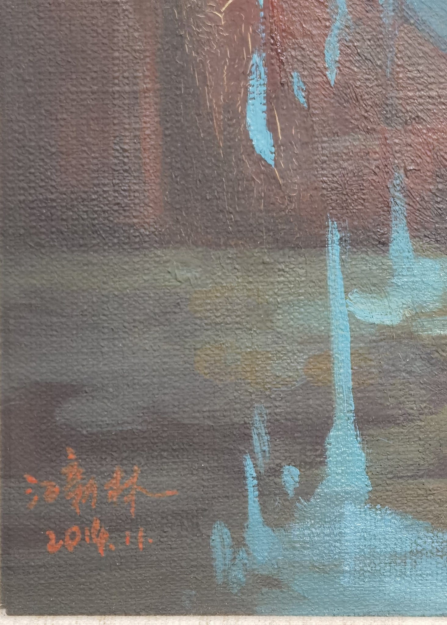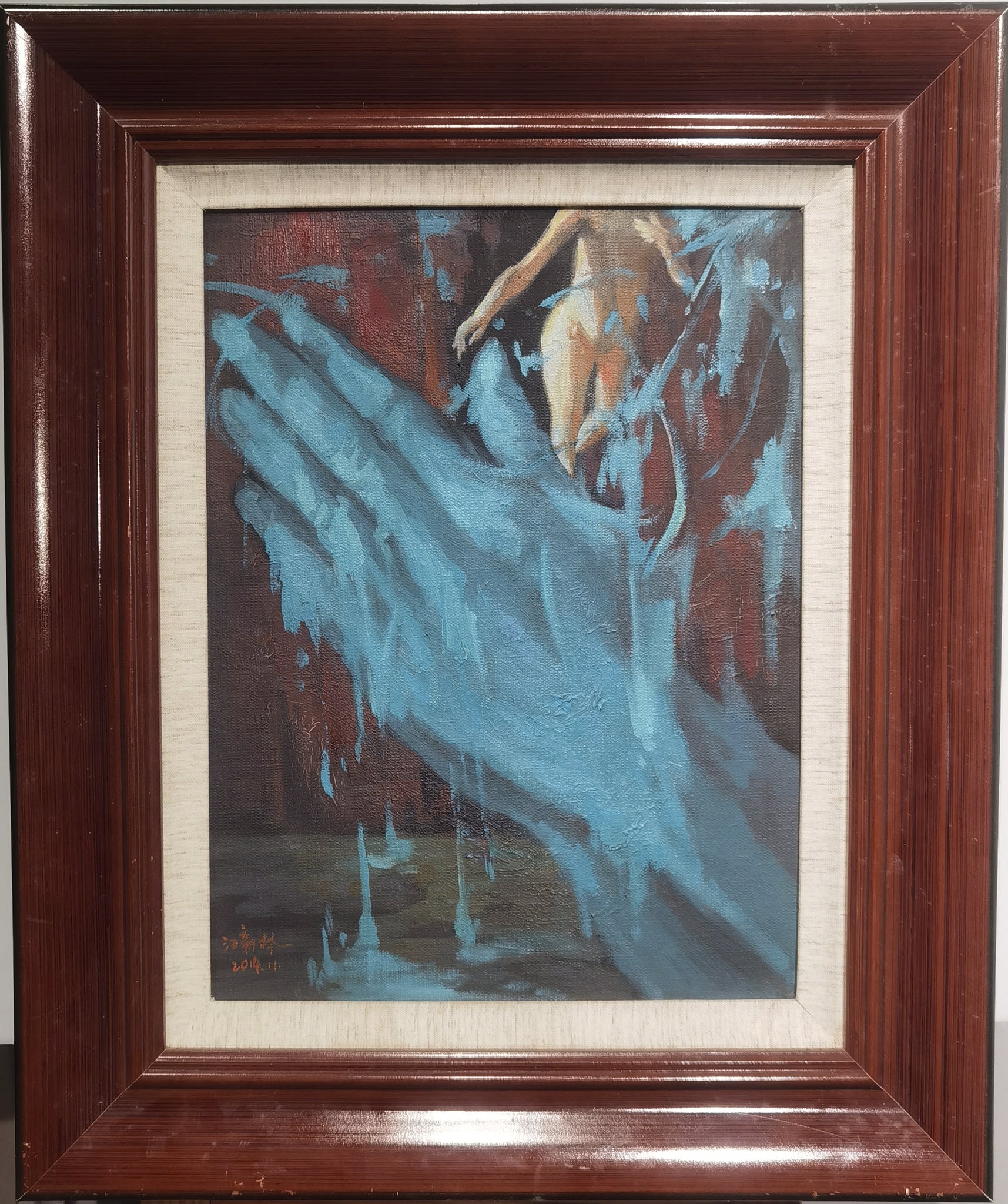 This piece exemplifies Jiang’s exploration of symbolic figuration through a dramatic palette and theatrical brushwork. Blending elements of contemporary surrealism and expressive realism, the work invites comparisons to Francis Bacon’s emotional intensity and the semiotic complexity of postmodern figural painting. Jiang’s painterly style also draws from Chinese allegorical storytelling, here infused with personal and psychological overtones.