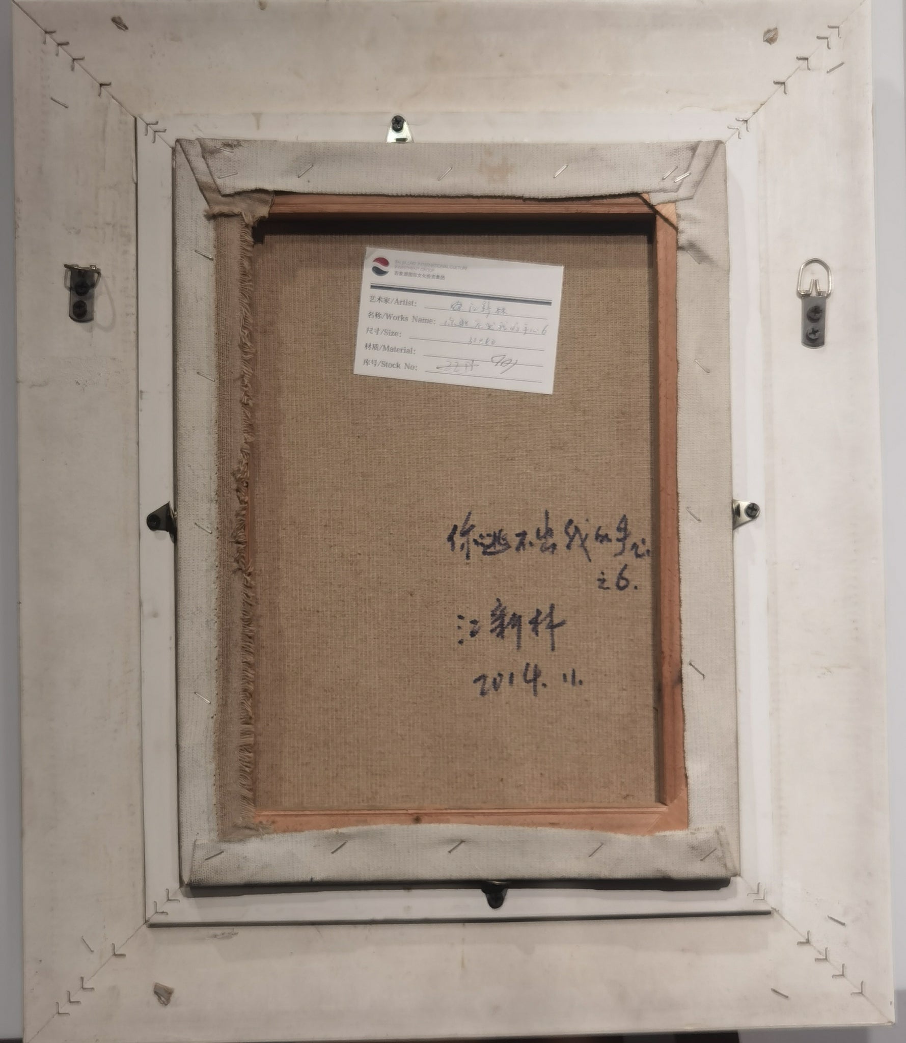 Painted in 2014, the piece is part of a broader cycle in Jiang’s oeuvre addressing themes of agency, identity, and power. The Title: references the Chinese idiom “you can’t escape my palm,” underscoring the psychological interplay between destiny and control—a frequent concern in the post-socialist cultural environment of 21st-century China. This period marked Jiang’s experimentation with smaller-scale canvases that compress narrative into concise, symbolic visual statements.