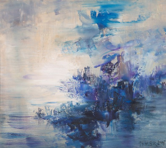 Executed with fluid brushwork and layered transparencies, the painting recalls the lyrical abstraction of mid-20th-century colorists, while resonating with traditional Chinese notions of landscape as an emotive and meditative experience. Chen’s chromatic modulations and gestural freedom reveal a deep engagement with both Western abstraction and the atmospheric sensibilities rooted in Eastern aesthetics.