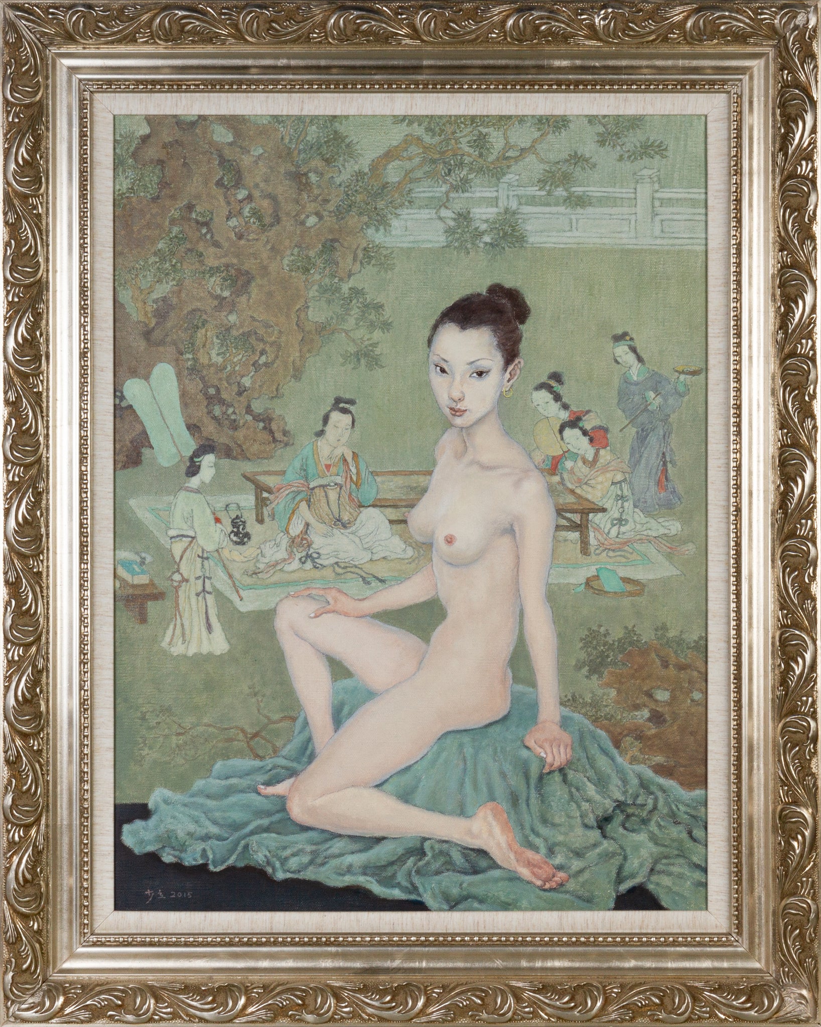 Painted in 2015, this work reflects the broader reexamination of tradition within Chinese contemporary art. In the post-Cultural Revolution period, artists such as Chen, trained in Western oil techniques, sought to reconcile China’s painterly past with modern form. This painting stands as a vivid dialogue between classical ideals of virtue and the artist’s subtly modern commentary on sensuality and identity.