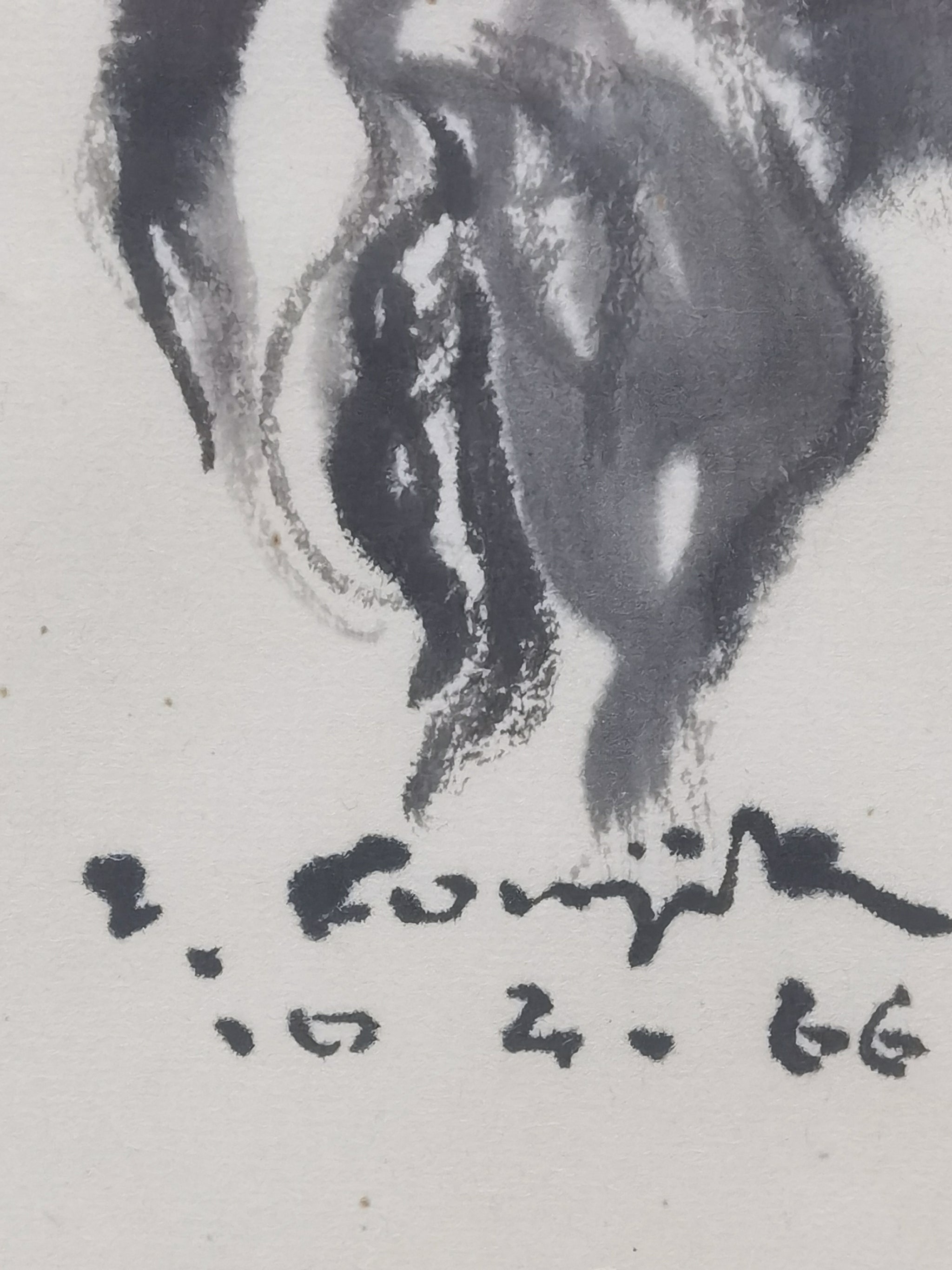Dated 1966, this piece emerges from a period of global artistic transformation, where themes of human suffering and redemption were widely explored across cultures. In Japan, artists were increasingly turning toward more introspective and emotionally charged subjects as a response to both historical trauma and evolving spiritual consciousness.