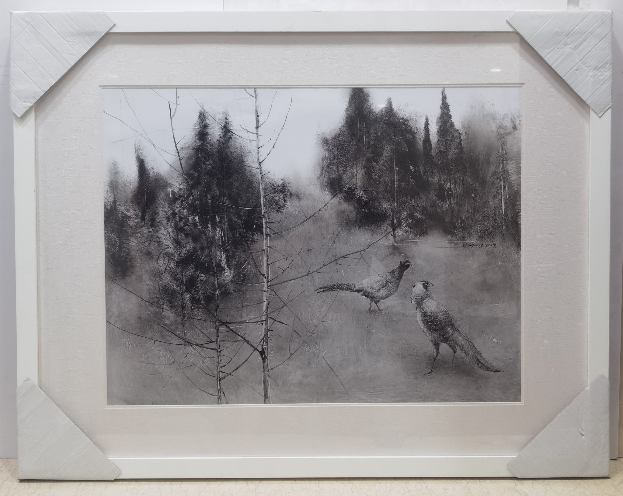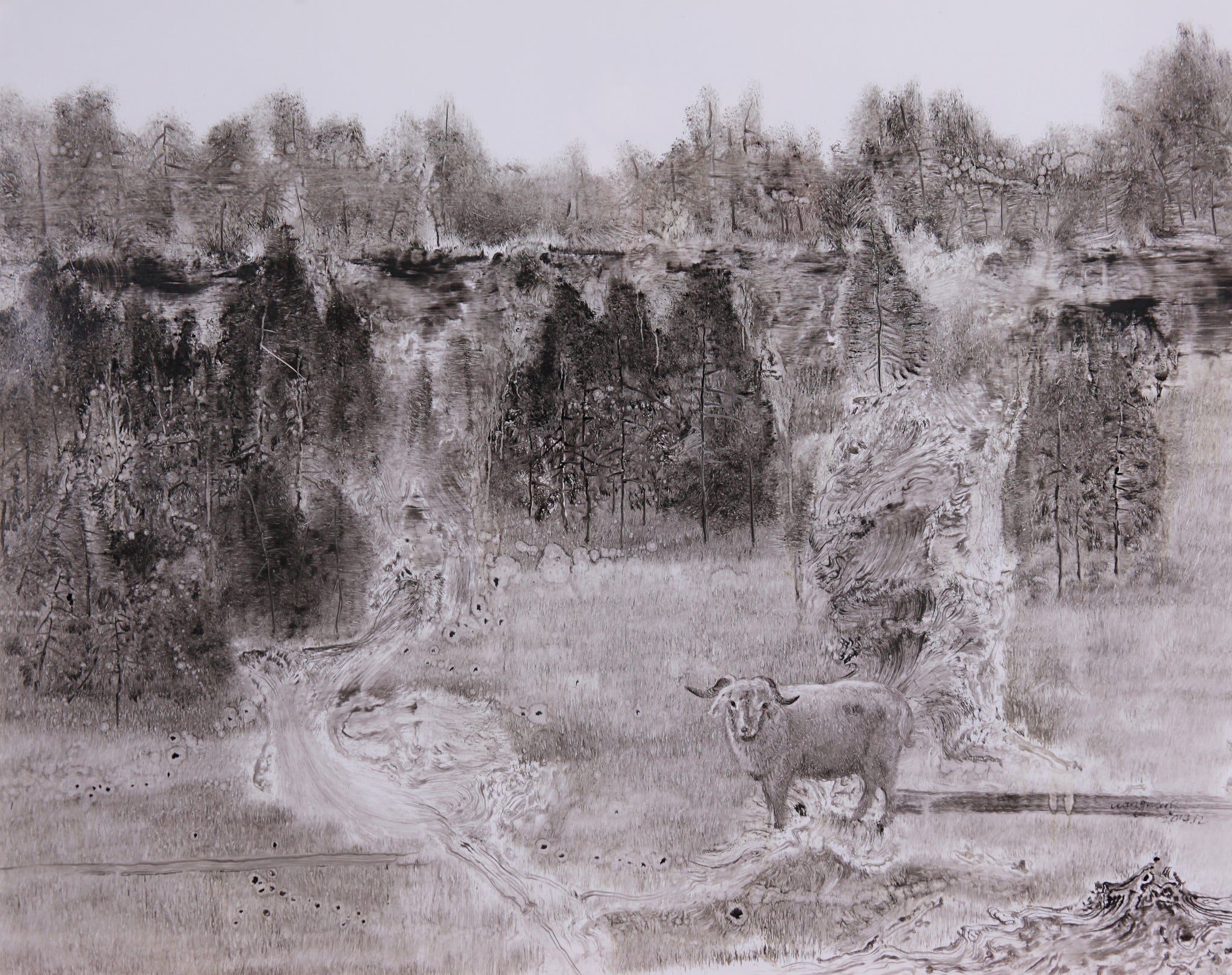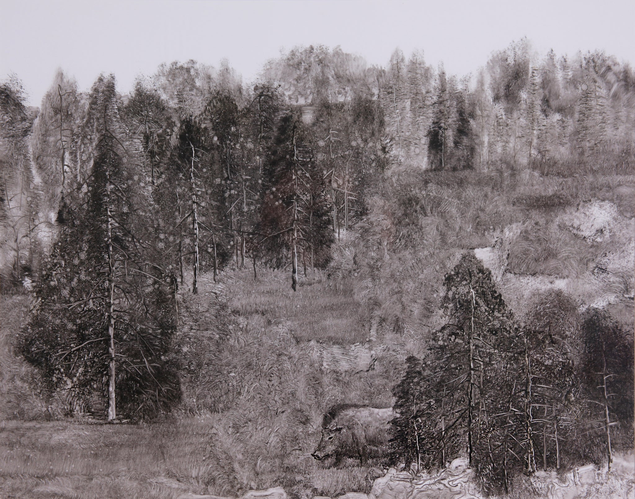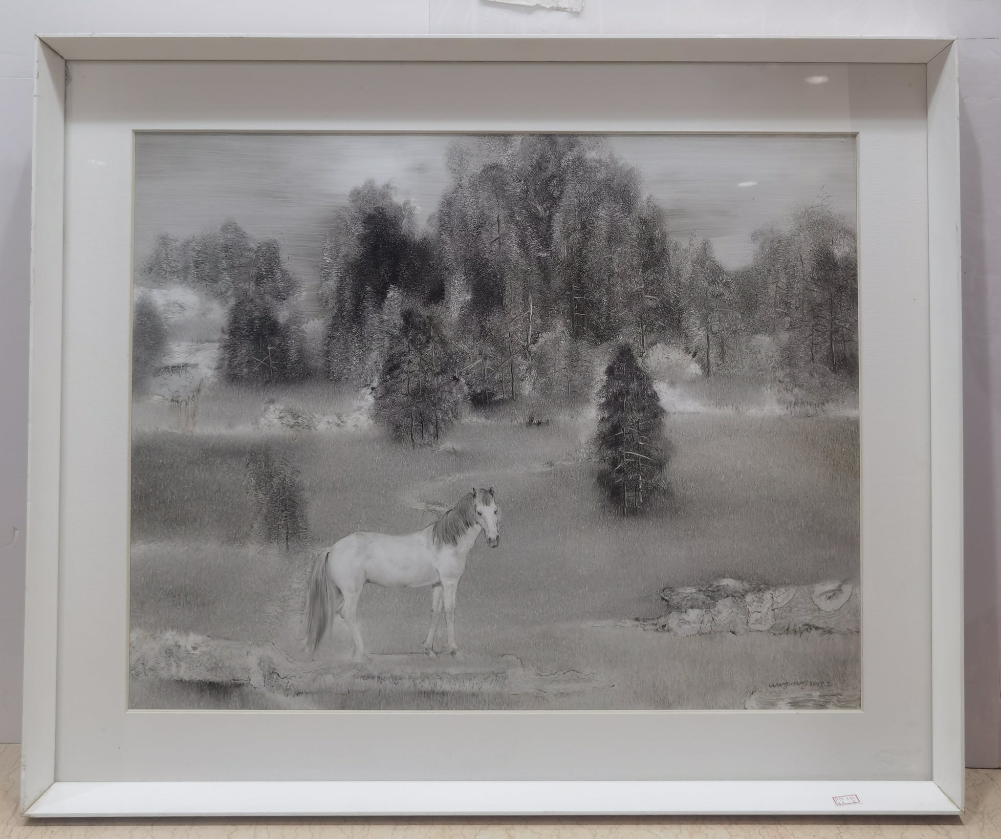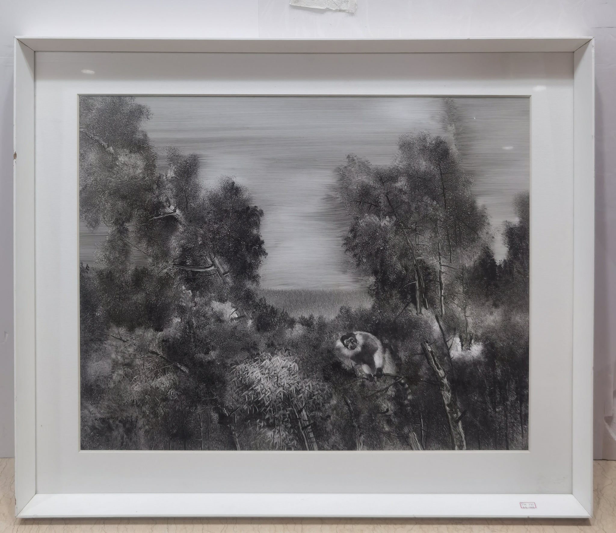 Wang Wang’s style is deeply influenced by classical Chinese ink painting traditions, adapted through oil on canvas with a contemporary sensibility. His use of grisaille technique evokes the softness and layering of ink wash, while retaining the physicality and depth unique to oil. The sparse, contemplative environments and quiet animal presences are reminiscent of Song dynasty landscape aesthetics, fused with modern tonalism and minimalist composition.