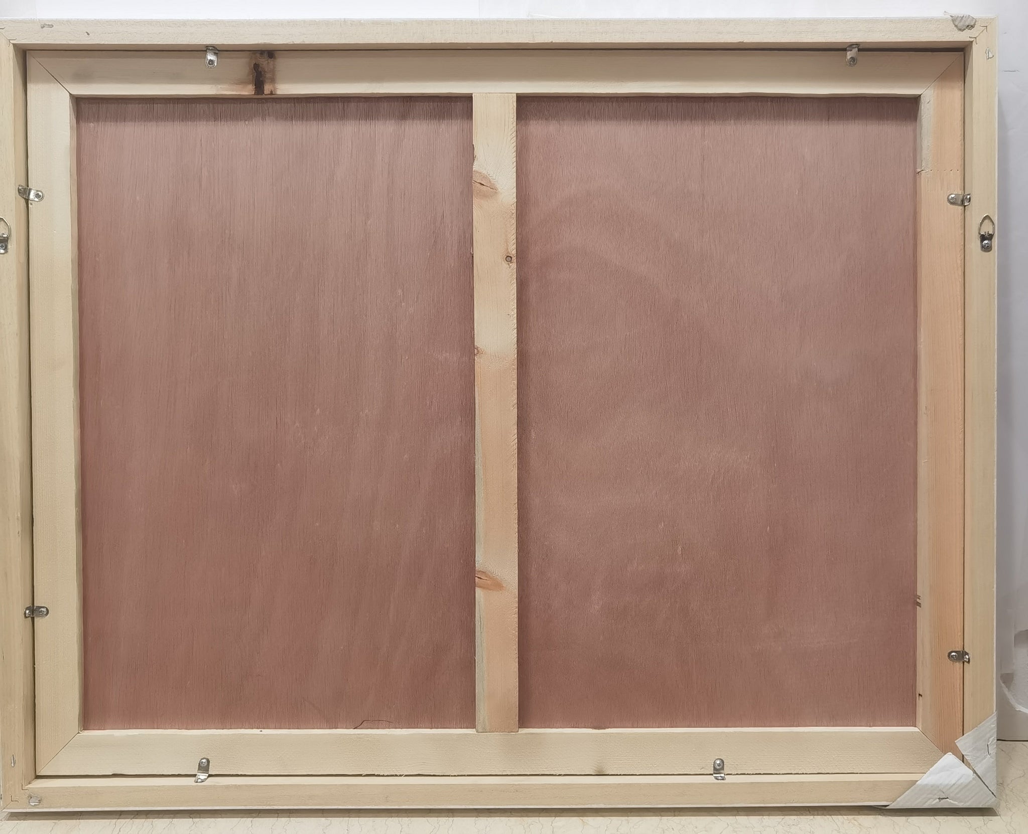 All eight paintings are preserved in very good condition. The canvases show no signs of damage, discoloration, or restoration. Each work is presented in a white contemporary frame, some still protected by corner guards, indicating careful handling and storage.